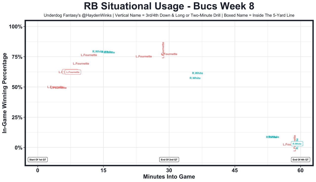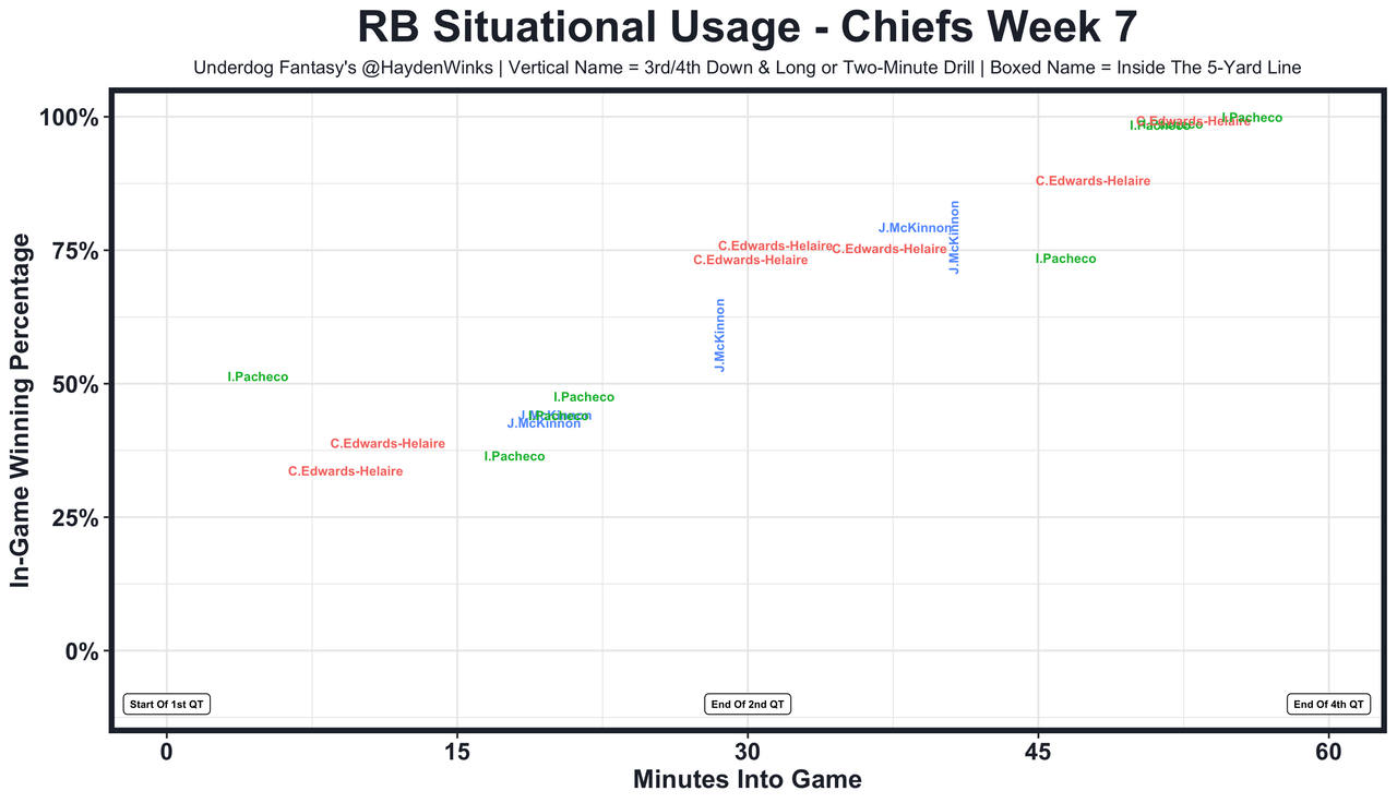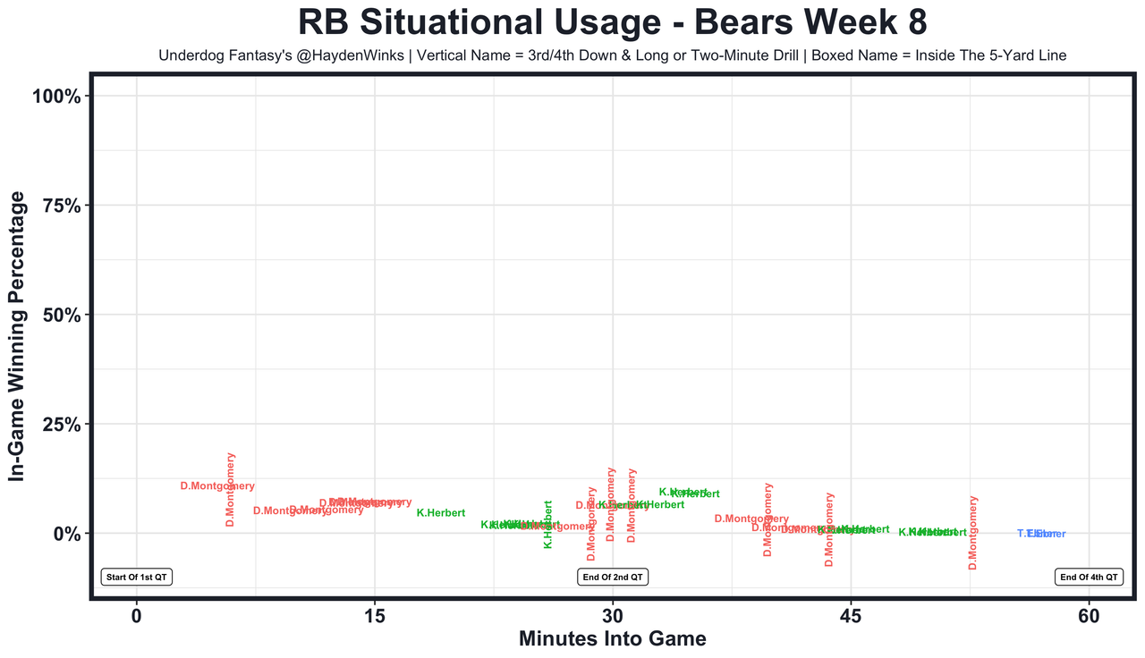 David Montgomery - He's holding onto the 2-for-1 drive rotation for dear life. I guess it's bullish that the Bears didn't trade him at the deadline. He actually had a season-high 12.6 expected half PPR points on 70% snaps last week.