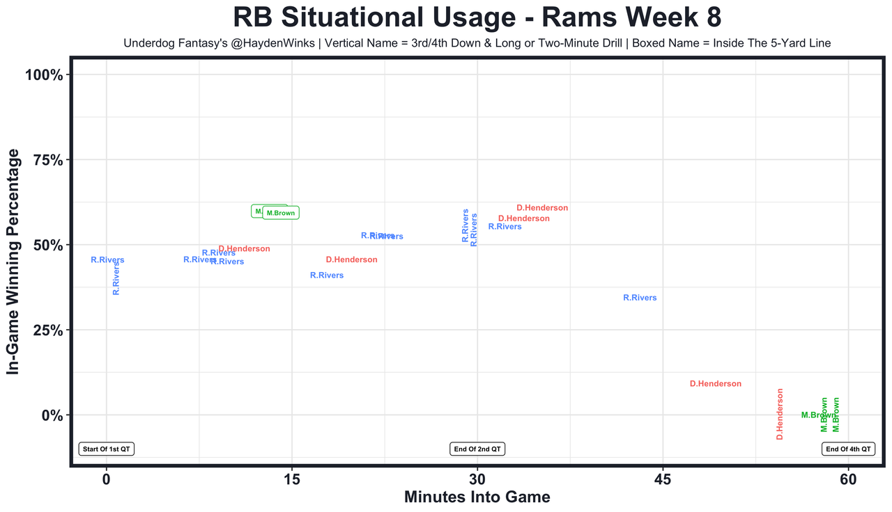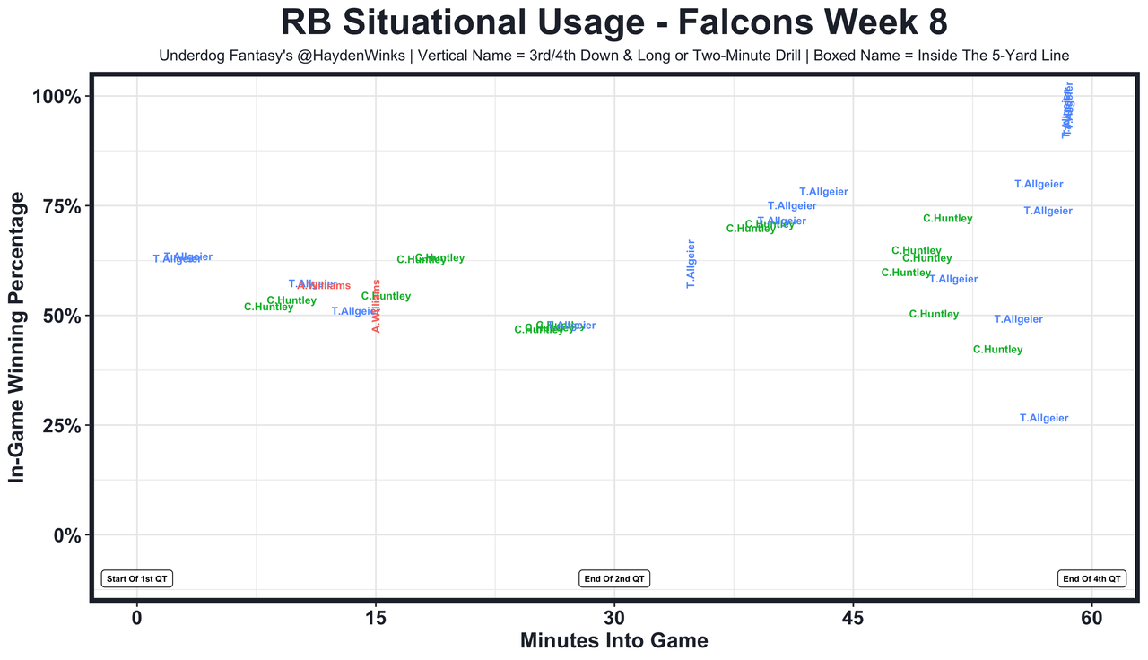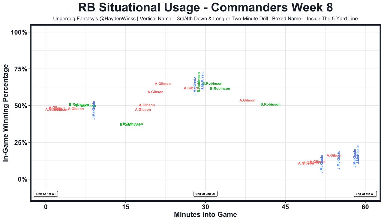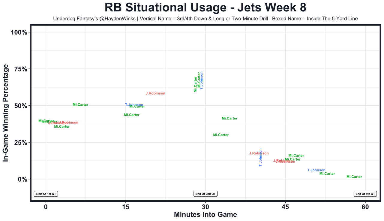David Montgomery - He's holding onto the 2-for-1 drive rotation for dear life. I guess it's bullish that the Bears didn't trade him at the deadline. He actually had a season-high 12.6 expected half PPR points on 70% snaps last week.