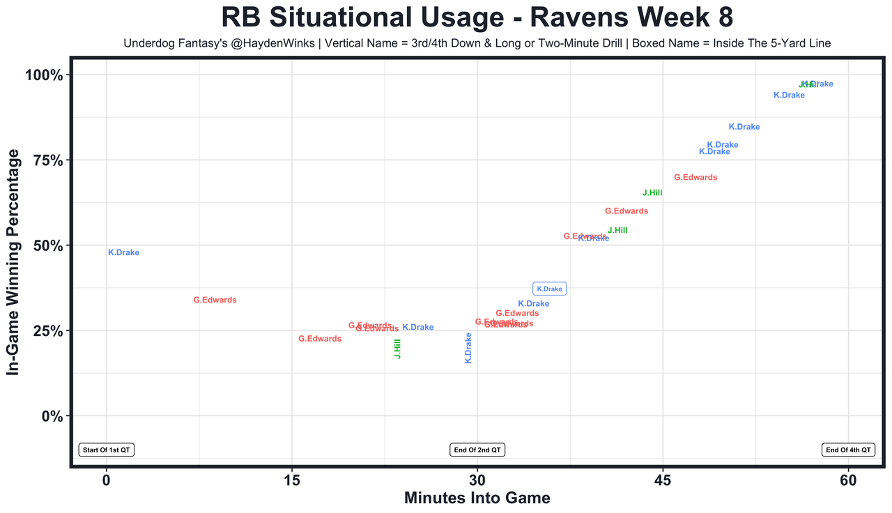 Kenyan Drake - Gus Edwards (hamstring) is out. It'll be Drake with Justice Hill at RB, while the Ravens also look to replace Mark Andrews and Rashod Bateman.
