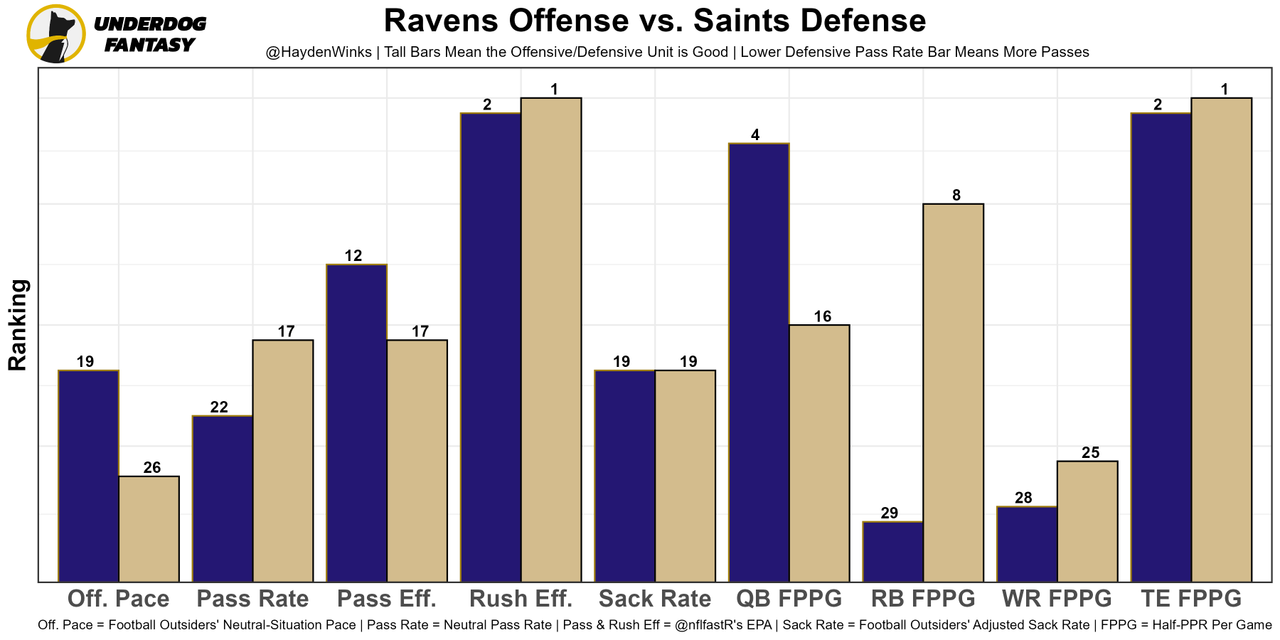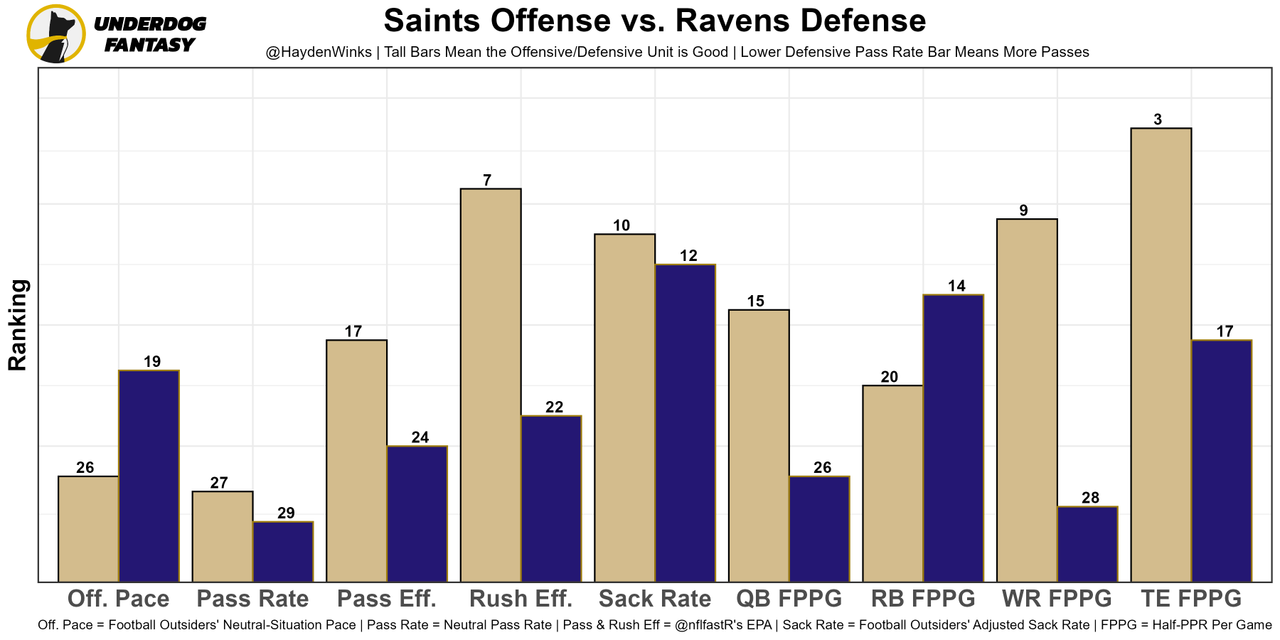 Chris Olave - This assumes Michael Thomas (IR) and Jarvis Landry (limited x3) remain out. Baltimore is 28th against fantasy WRs, with opposing offenses choosing to pass at the 4th-highest rates in neutral situations.