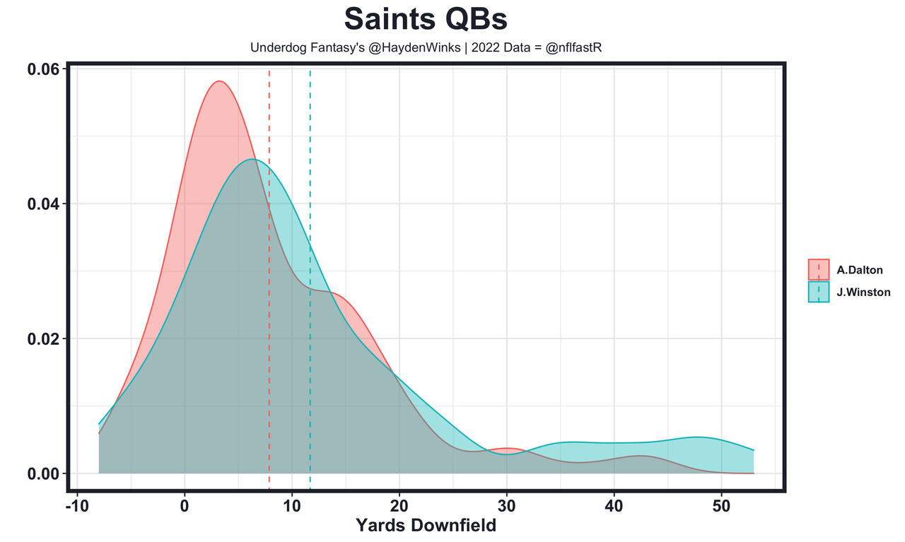 Alvin Kamara - You can't draw it up better for Kamara with Andy Dalton being named the starter. Look at all these checkdowns and screens underneath.