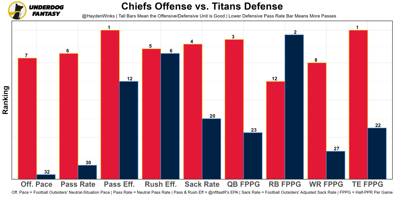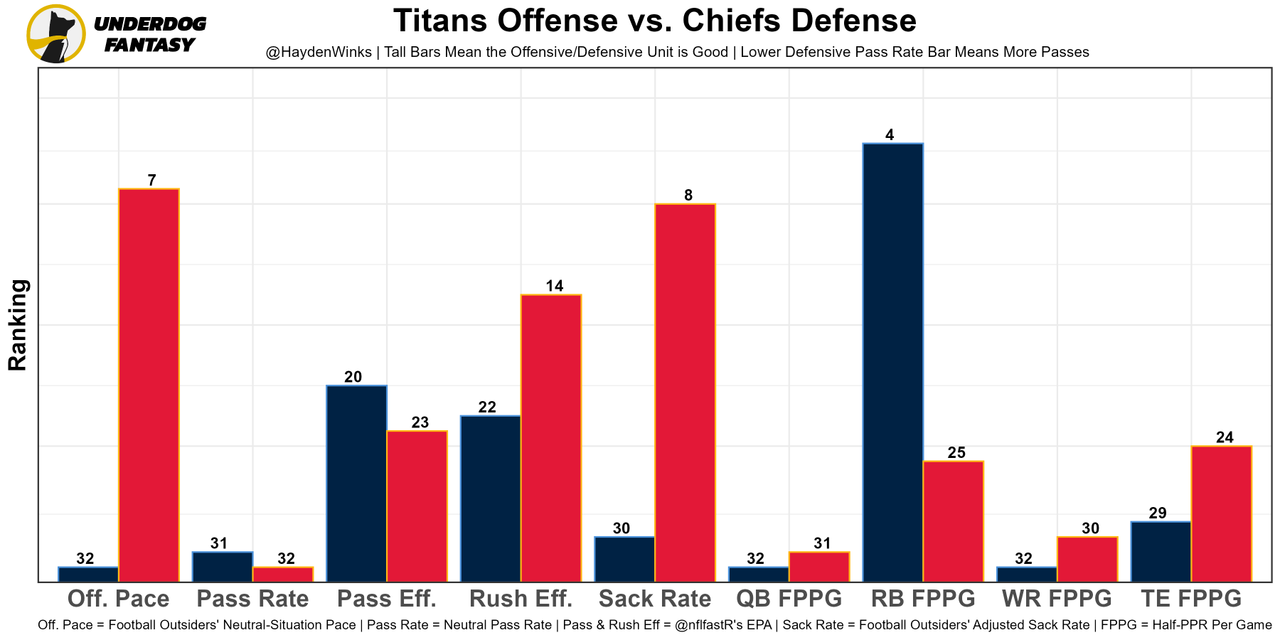 JuJu Smith-Schuster - The Titans are 27th versus fantasy WRs and offenses facing the Titans are choosing to pass at the 3rd-highest rate in neutral situations.