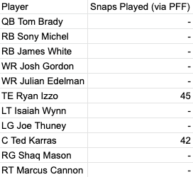 ESPN's Mike Reiss shared the below image on Thursday, which is what he expects the Patriots' lineups to be against the Giants: