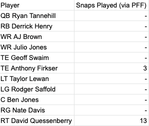 Titans Notable Injuries/Absences: