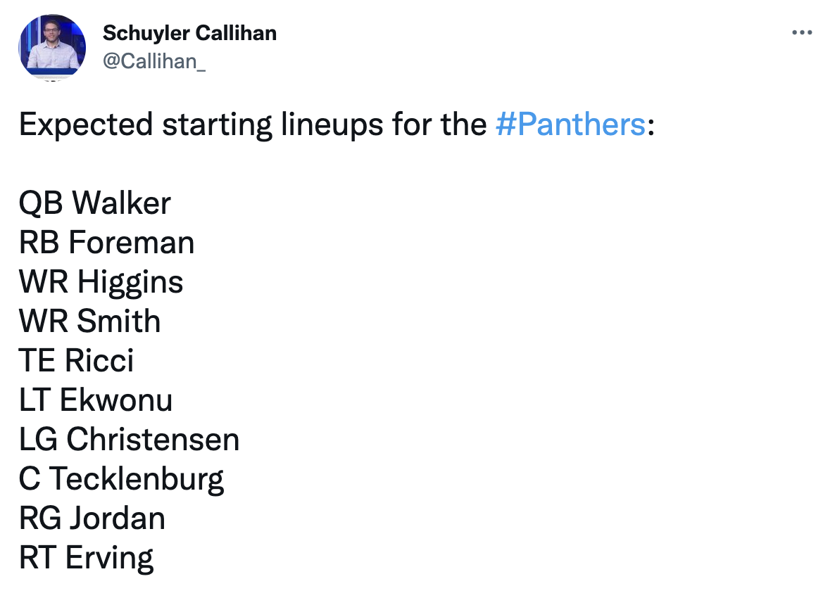 This is the expected starting lineup for the Panthetrs, per Schuyler Callihan of SI Now :