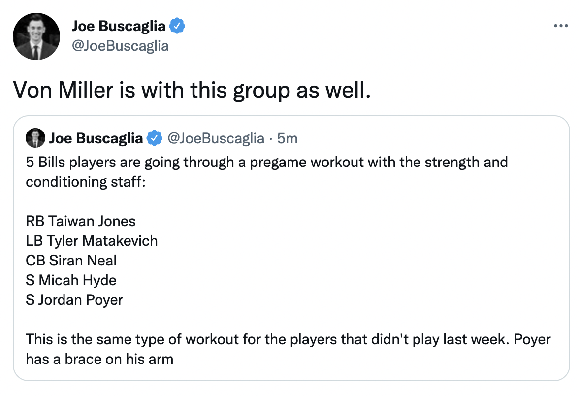 While most Bills starters might play, it doesn't appear Von Miller will: