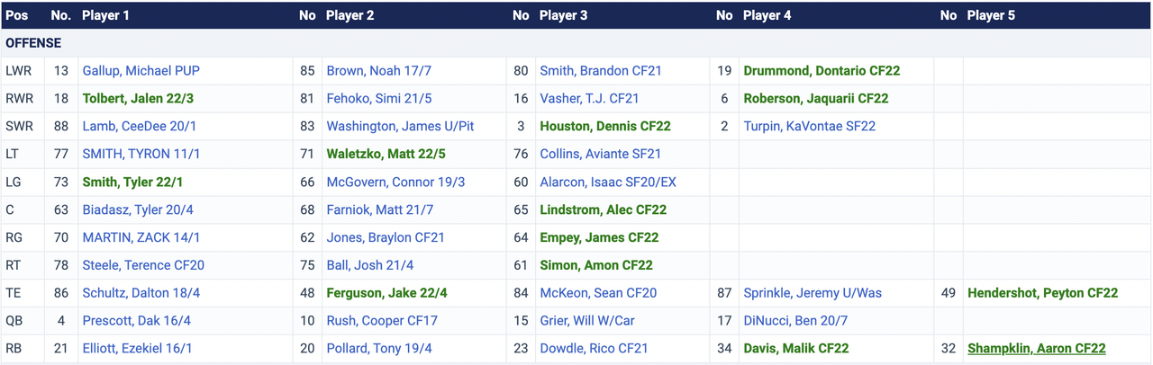 Dallas did not play any non-offensive line starters in Week 1 on the offensive side of the ball. It remains to be seen whether they emulate the same strategy, but they very well could with the team suffering as many injuries as they have.