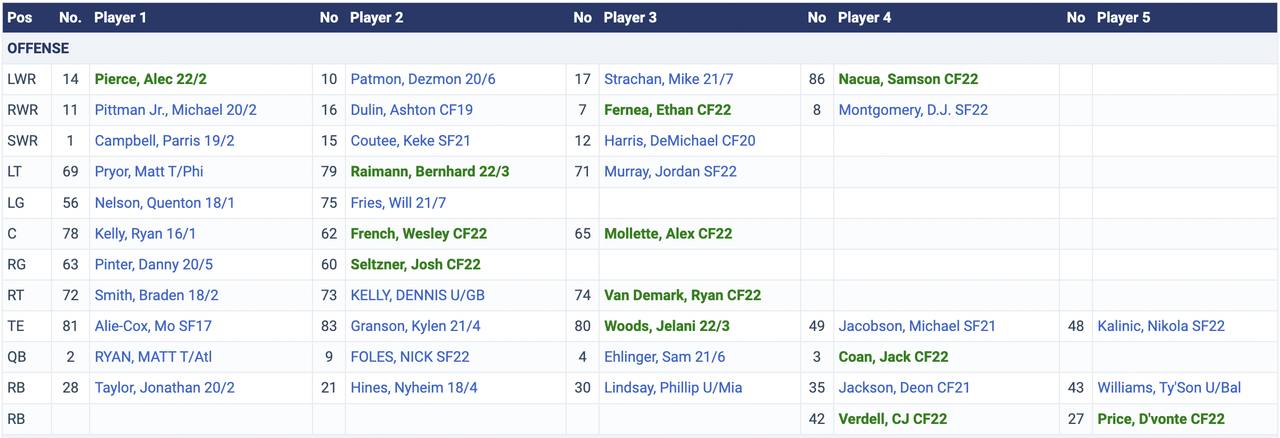 OUT: QB Matt Ryan (rest), RB Jonathan Taylor (rest), WR Michael Pittman Jr (rest), TE Drew Ogletree (knee), LB Shaquille Leonard (back); QUESTIONABLE: WR Keke Coutee (groin); LIKELY TO PLAY: WR DeMichael Harris (undisclosed), WR Michael Strachan (undisclosed)