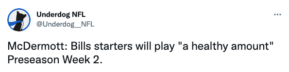 Buffalo didn't specify who else might play, but coach McDermott did give us a hint by saying "most starters" would play. That list could include some of the skill position players listed above in the "likely to play" section, though we can't say for certain.