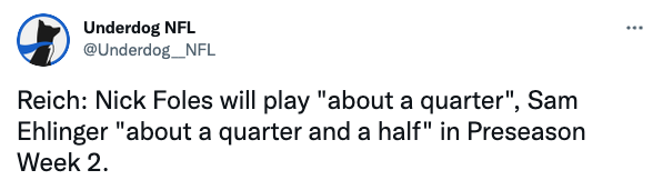 He elaborated further by mentioning Nick Foles would start and play about a quarter, with Sam Ehlinger following him and playing about a quarter and a half: