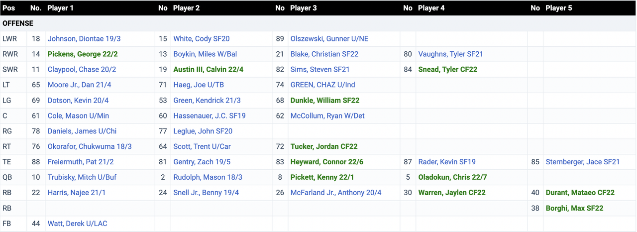 The Steelers will start Mitch Trubisky at QB in this game. Rookie Kenny Pickett will follow, and Mason Rudolph will enter after both. Head coach Mike Tomlin did not delve into how much playing time each guy would get, but we'll get to see all three compete once again.