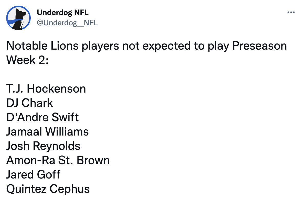 The Lions appear to be going with a starting offense filled entirely with backups: