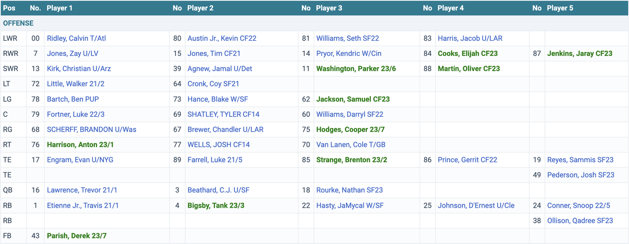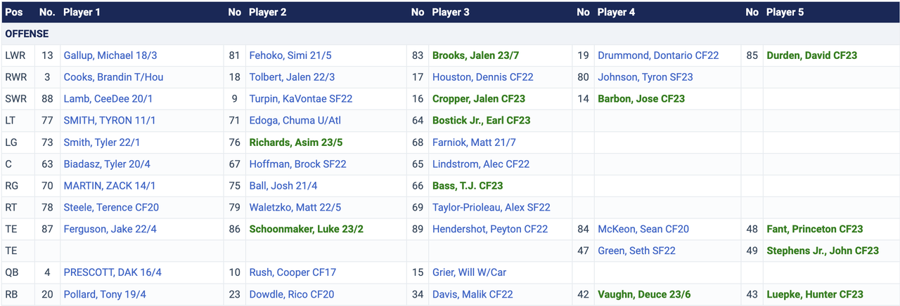 TE Luke Schoonmaker is expected to play. As is first-round pick DT Mazi Smith.