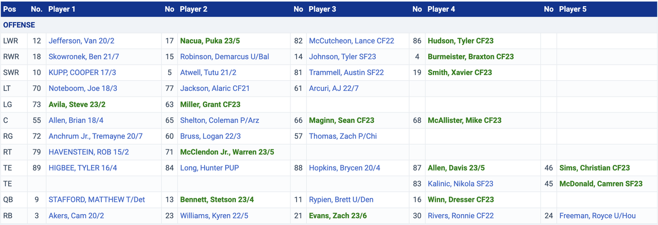 The Rams have historically not played any of their starters under head coach Sean McVay. Not much has been said on their preseason plans but it's fair to assume no presumed entrenched starters will be showing up in this one.