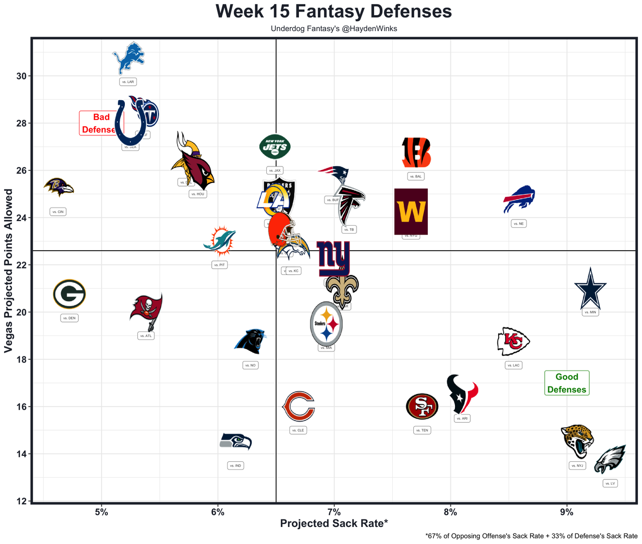 The Giants fired their HC, then their DC, and then this week their DL coach for arguing about the seating arrangement on the airplane. It's a disaster on defense over there, and DT Rakeem Nunez-Roches and EDGE Kayvon Thibideaux are expected to miss. Mariota has been the QB15 per game in his starts, and the rest of the offense is healthy aside from Zach Ertz right now. It's a good spot with a solid 22.0-point team total.