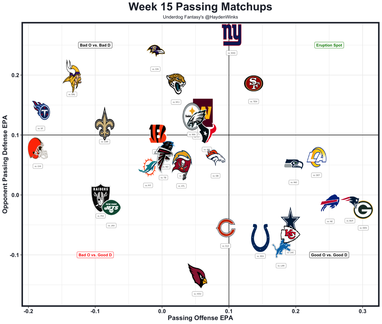 It's an eruption spot against the Commanders and slow-footed Bobby Wagner. Johnson is the TE19 on TE9 usage, as a buy low candidate, and the Giants are quietly projected for 24.0 points this week. On the season, they're 12th in EPA per play!!! It's a solid spot all around.
