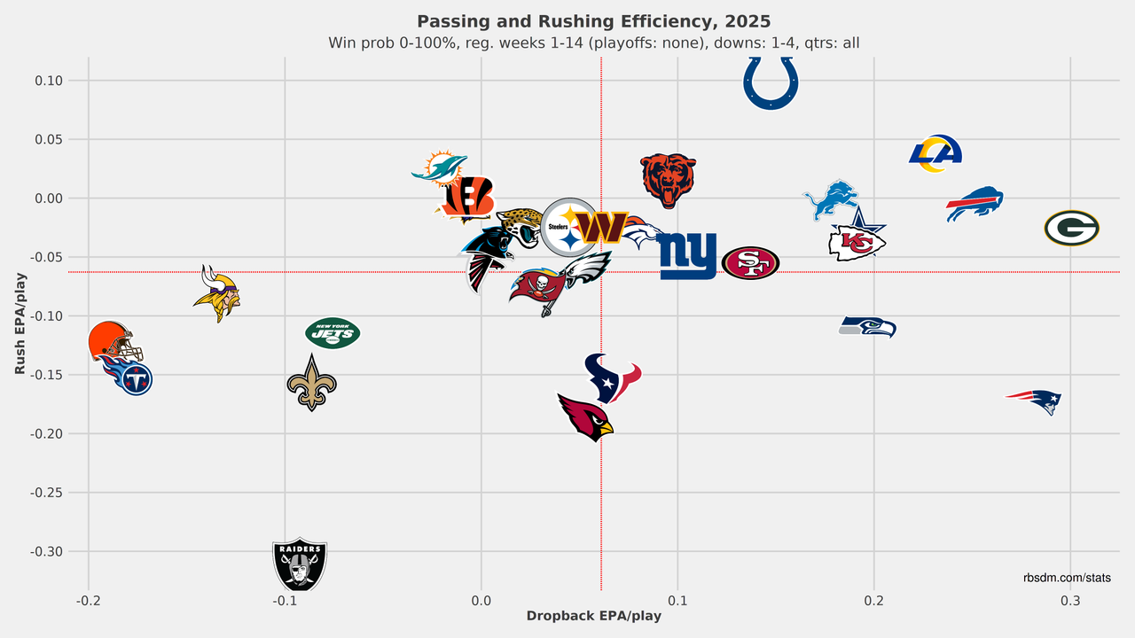 Oh no... The Colts are 2nd-lowest in projected points (14.5) in Seattle with a grandpa potentially coming in to save the day. Taylor is just the RB22 on RB15 usage this month with the Colts regressing, and this is by far the worst spot on paper. Philip Rivers will have to get the ball out within 2.5 seconds to survive, so a more Taylor-centric offense would make sense. It's just no longer a good one. In fact, it's probably a very bad one this week. The closest comps are suddenly Breece Hall (RB35 on RB24 usage this month), Quinshon Judkins (RB28 on RB22 usage this month), and Ashton Jeanty (RB34 on RB17 usage this month).