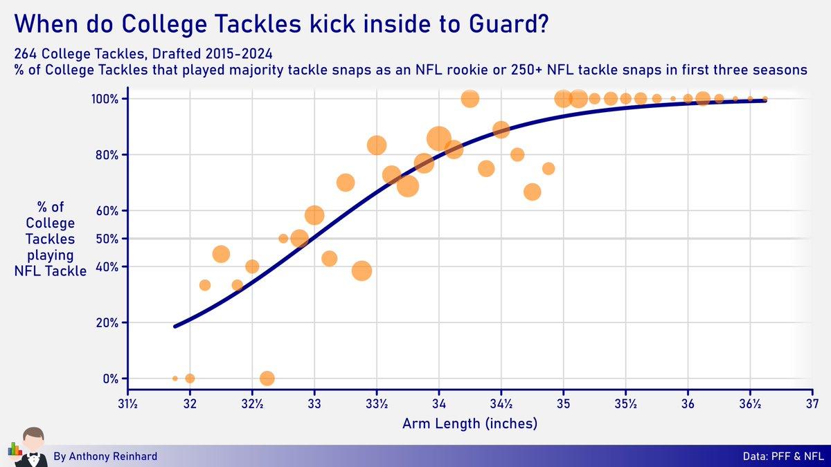 The 21-year-old early declare and three-year starter at left tackle brings impressive movement skills for his 6’6”, 323-pound frame. Campbell plays light on his feet and with great balance, giving him a calm presence in pass protection. His timing to engage with defenders is a plus, helping him allow just a 3% pressure rate against outside rushers. He was worse on inside moves like every tackle (10% pressure rate), where his concerning length and strength make recovery harder. His biggest red flag is that the pocket collapses because of his lack of strength when he's not getting fully pressured. Campbell is an asset in the run game because of his body control and fluidity. He'll climb to the second level and can be used as a puller. On top of that, there were times where he'd call out incoming blitzers, and I've loved his interviews. It's easy to see why he was a captain. There's positional versatility because of his left tackle experience, but his 77.5-inch wing span is the lowest in Mockdraftable's data set for OTs. Start him at tackle with guard or even center being the backup plan. It's more likely than not that he ends up on the interior, lowering his long-term value because it's so hard to find real LTs.