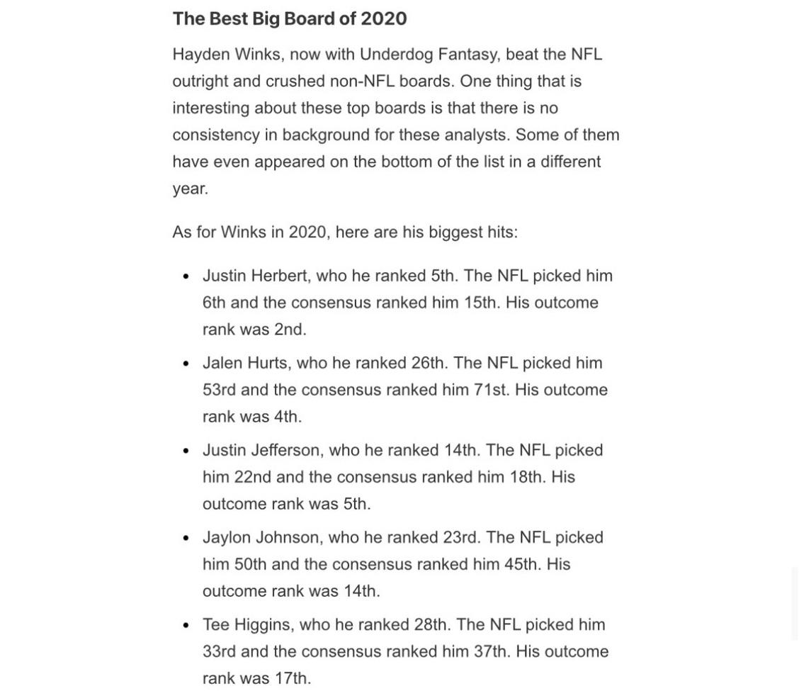 The goal, of course, is to repeat my crown of having the best Top 100 big board on the internet per Arif Hasan when we finally get to draft week.