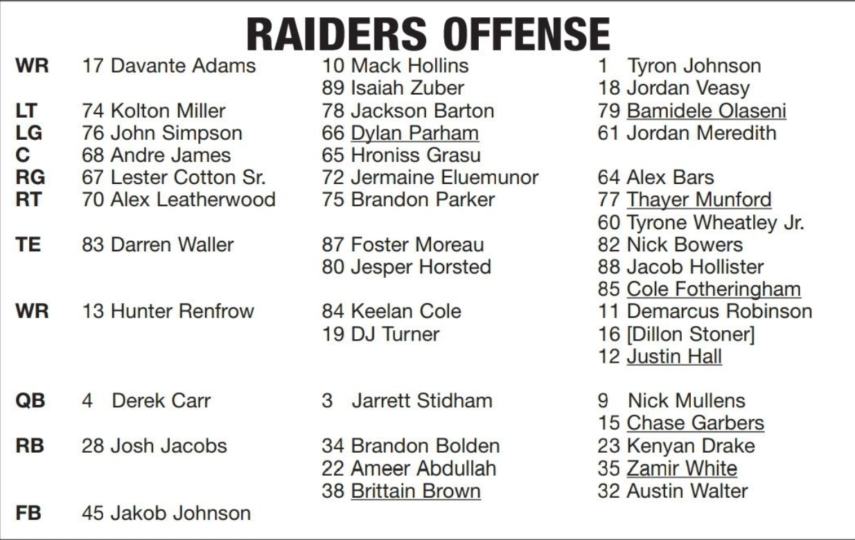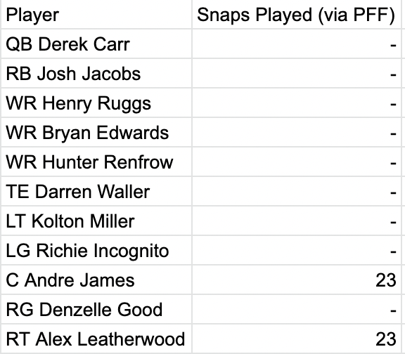 It's fair to expect little to no action for Carr, Adams, Renfrow, Waller, and RB Josh Jacobs.