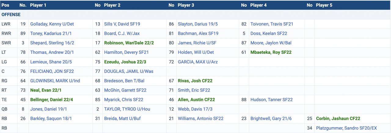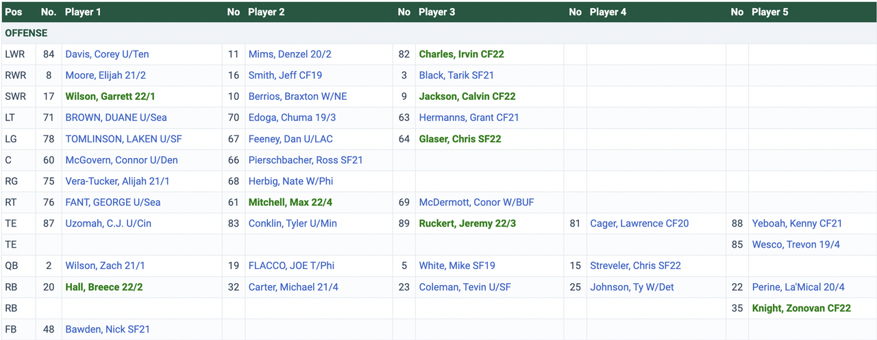 We should get our first look at starting QB Joe Flacco in this offense. It remains to be seen if anyone else will be held out, but if not, Flacco should get some opportunities to build chemistry with WRs Corey Davis, Elijah Moore, and Garrett Wilson.