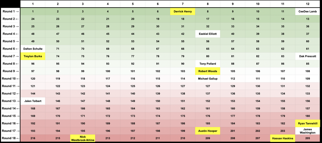 Favorite game stack: Dalton Schultz (Round 7) + Dak Prescott (Round 8) + Michael Gallup (Round 10) with Austin Hooper (Round 17).