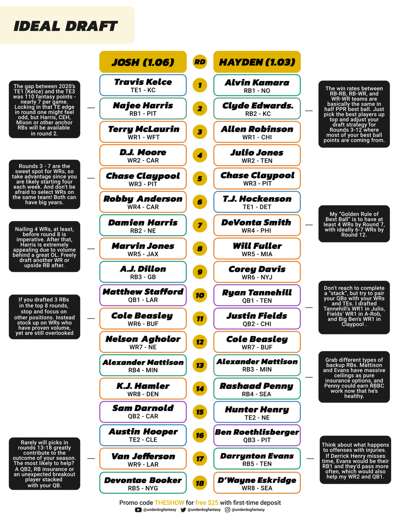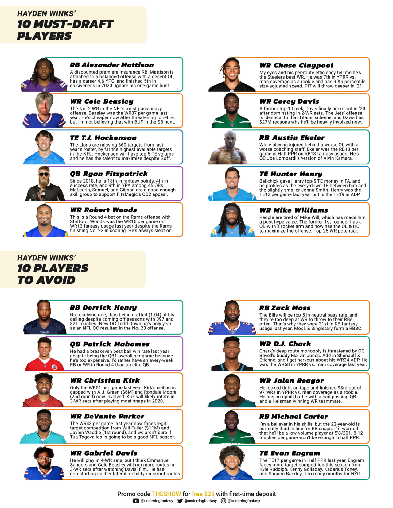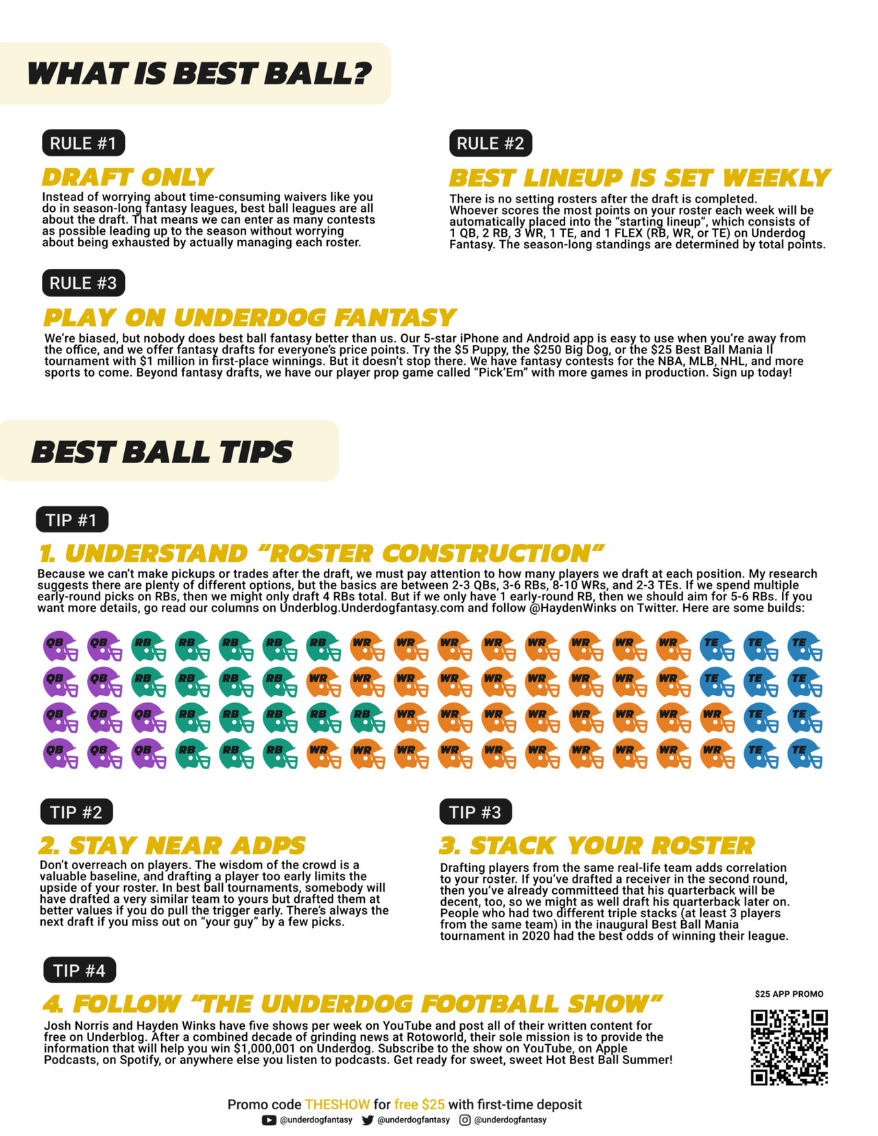 Here’s a preview of the guide, which features a $25 bonus for all first-time Underdog Fantasy sign-ups with promo code ‘THESHOW’. Feel free to scan the QR Code on the guide’s front page.