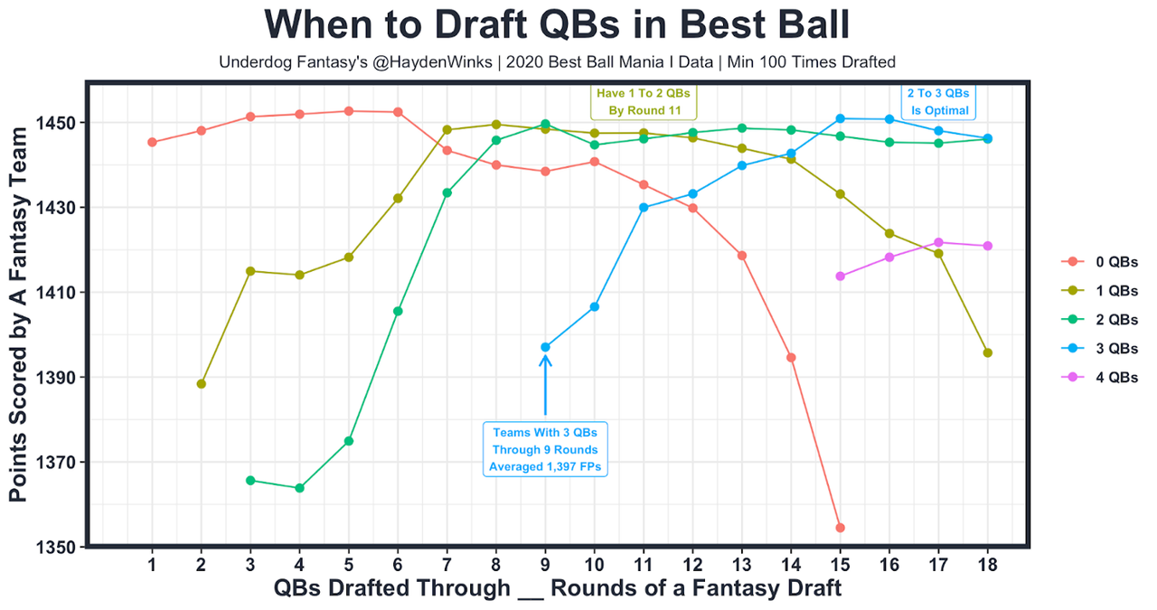 So if I've drafted a quarterback within the first six rounds, the earliest I'll be looking at QB2 will be in Round 8 or 9 knowing that waiting all the way until the Round 12-16 range can work, too.