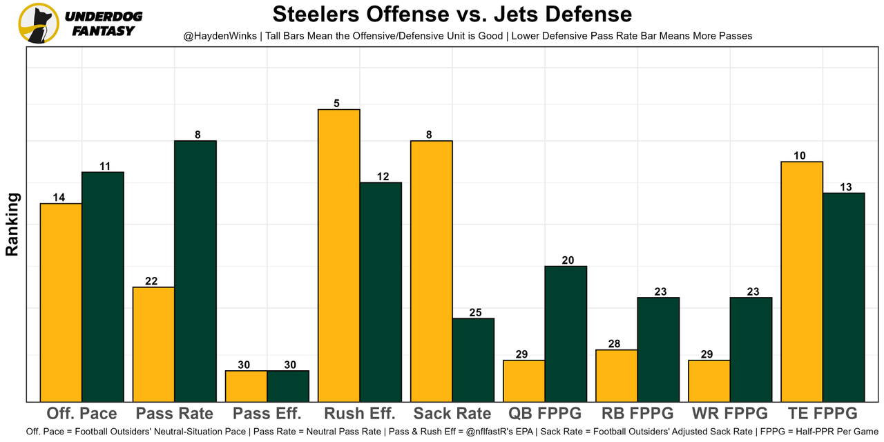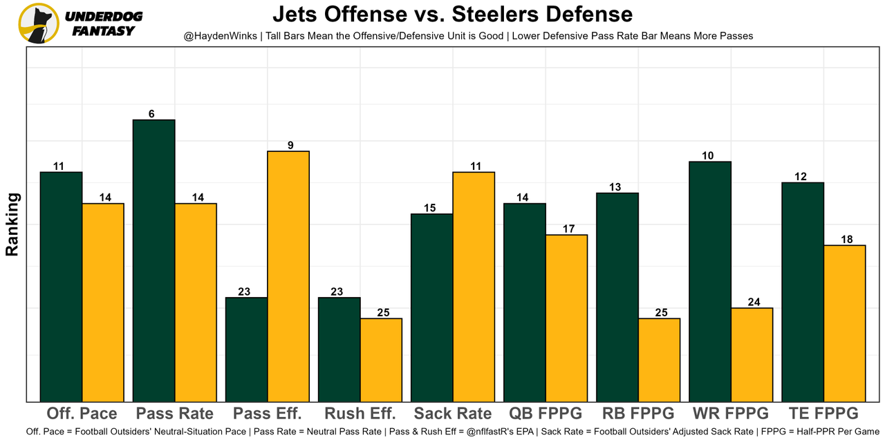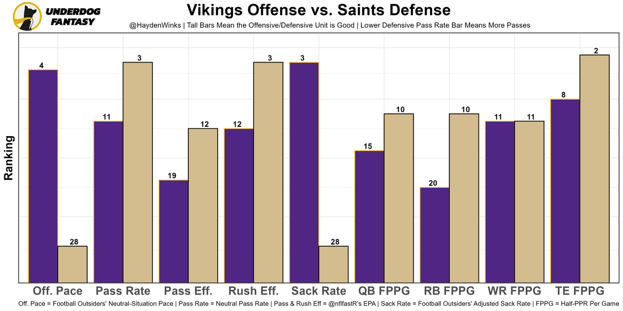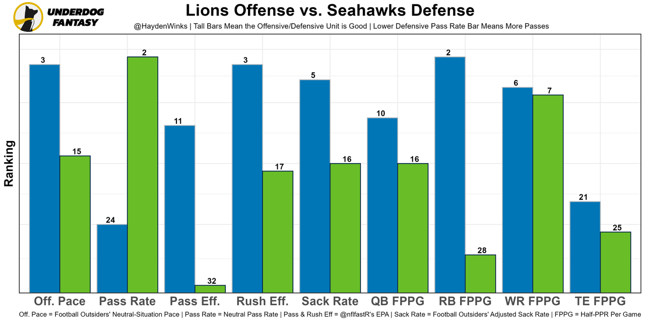 The scheme is putting all of their role players into positions where they succeed, and Lawrence has taken a second-year leap. Jacksonville is well-protected, too, ranking 1st in sack rate on offense. This is the toughest matchup to date, by far, but the Eagles offense has been so good that this could just turn into a fast-paced shootout. Both offenses are top-7 in neutral pace.