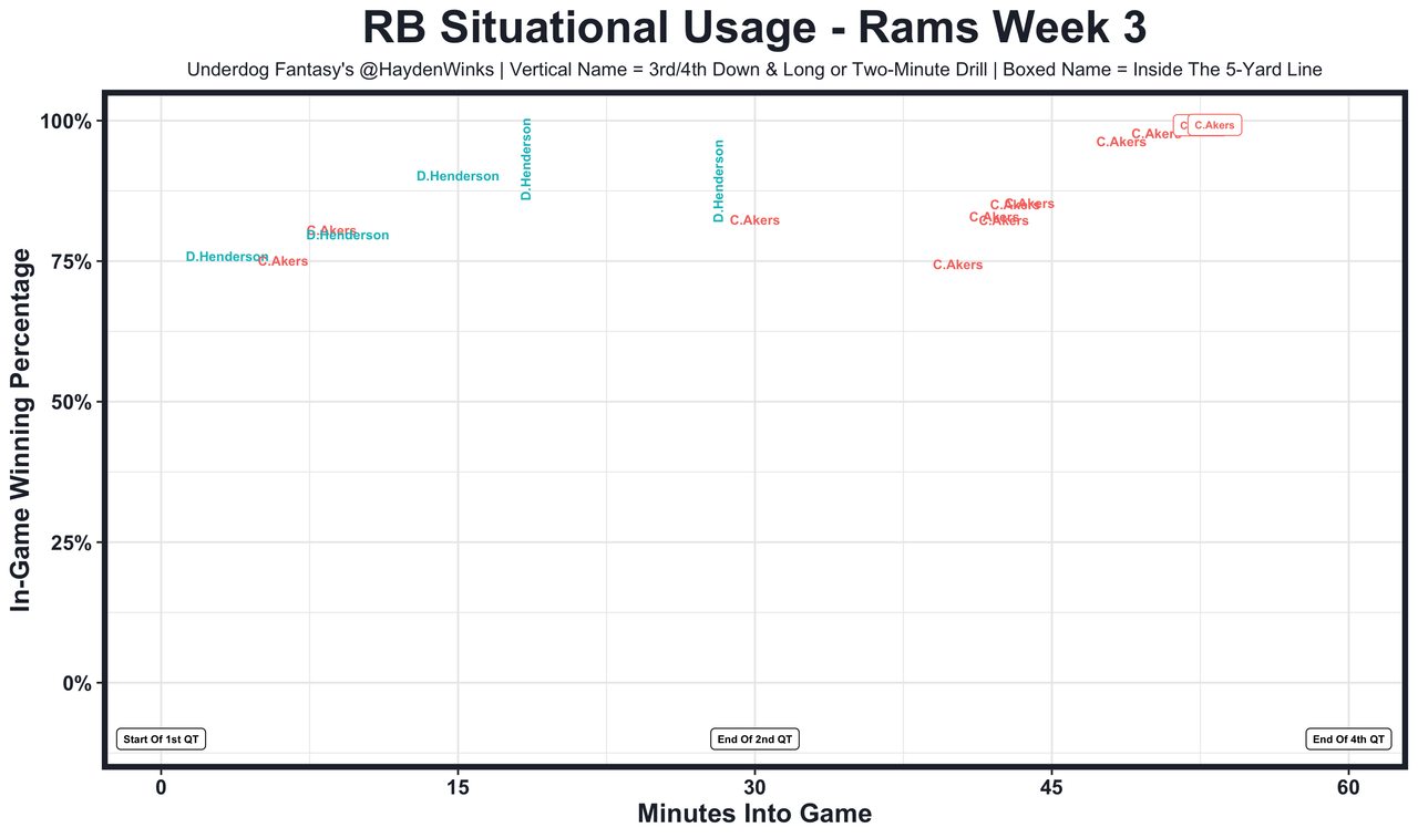 Cam Akers - His last touch was a goal line fumble. Let's see if McVay holds it against him, as he's called out Akers' consistency already earlier this season. My guess is a committee again. This time, however, the Rams are only projected for 20.0 points.