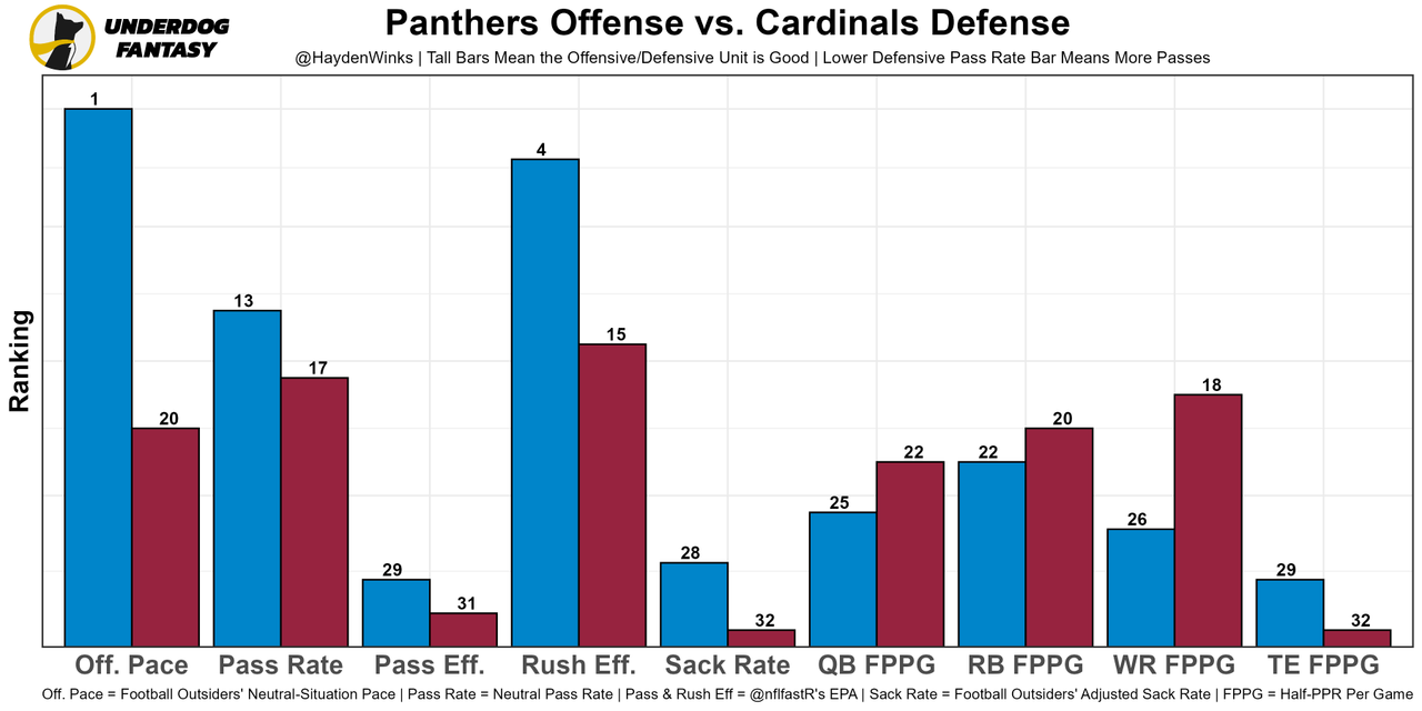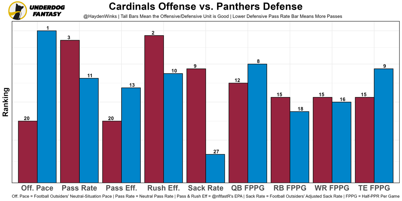 Nothing about this offense threatens deep, and there are so few high-low reads for Kyler to make. It's all on him to make a play, and the Panthers defense has plenty of athlete to keep up. It's just impossible to rank Kyler lower with his skillset, even the Arizona's 20.75-point team total is meh.