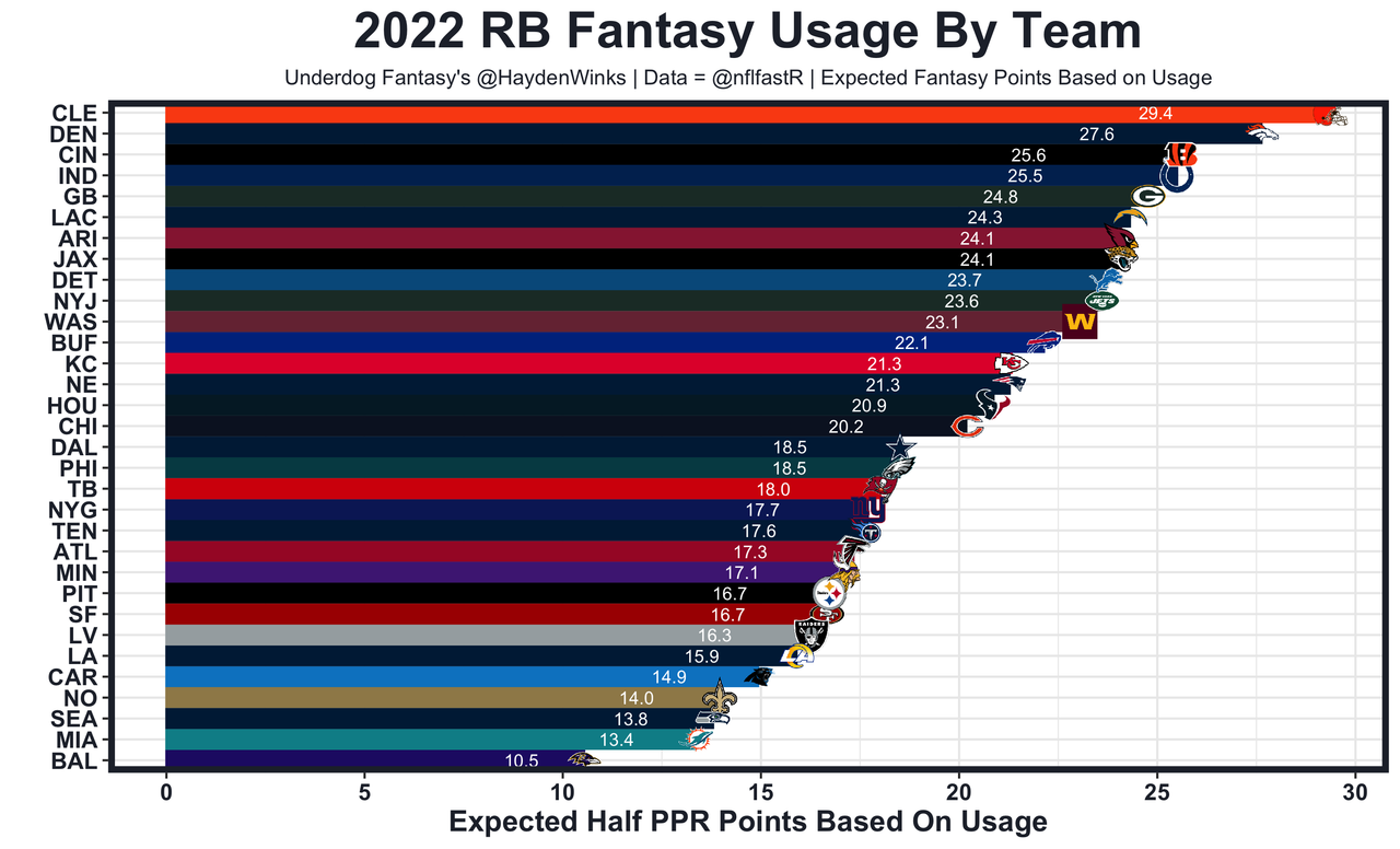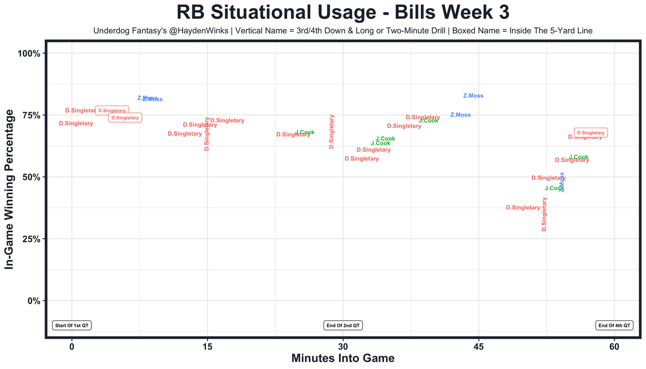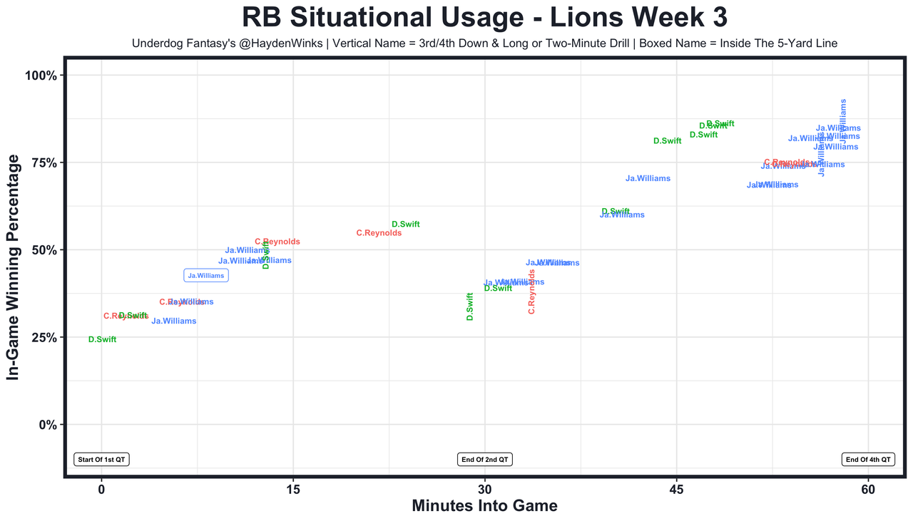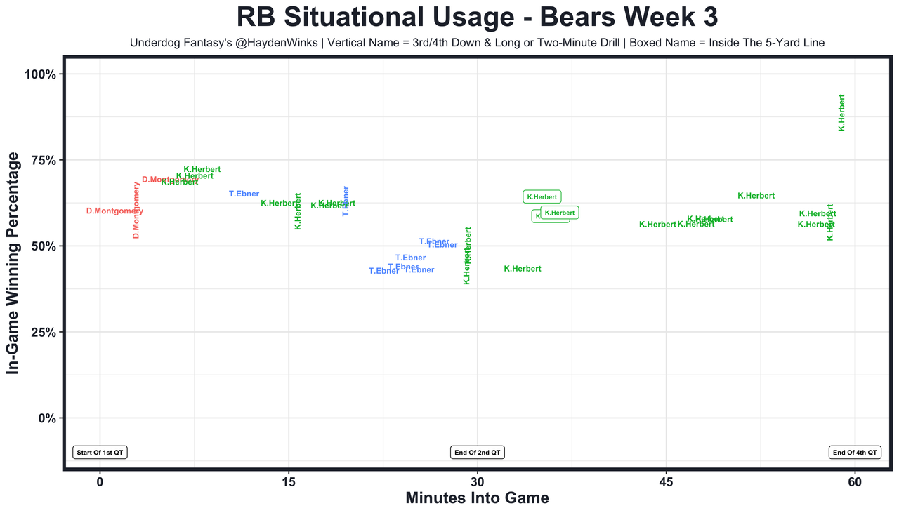 Khalil Herbert - David Montgomery (ankle) is out, and last week, Herbert had 18.0 expected half PPR points. We discussed him here, with all-22 film.