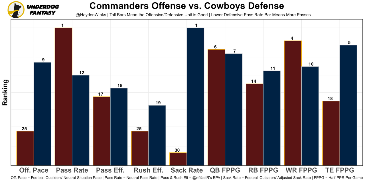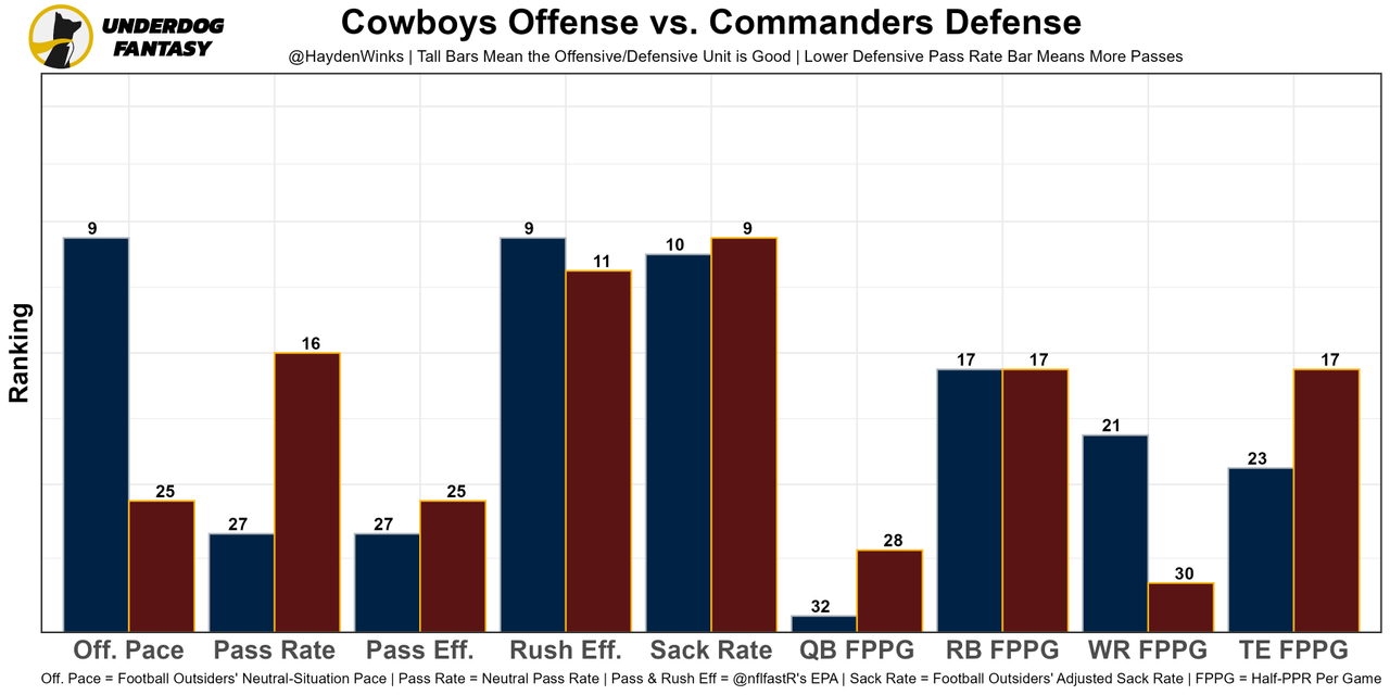 Washington DC Jack Del Rio needs to do some more of his own research on how to communicate in the secondary. Until then, the Commanders will be below-average against the pass despite a talent-heavy front seven. Cooper Rush should get Michael Gallup (and maybe Dalton Schultz) back to round out the skill group.