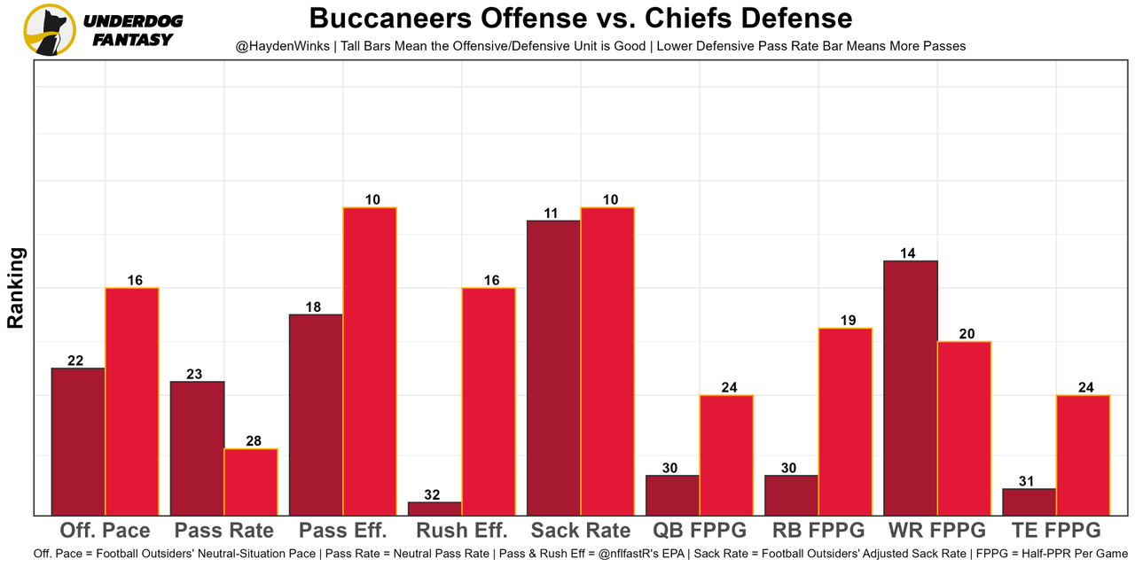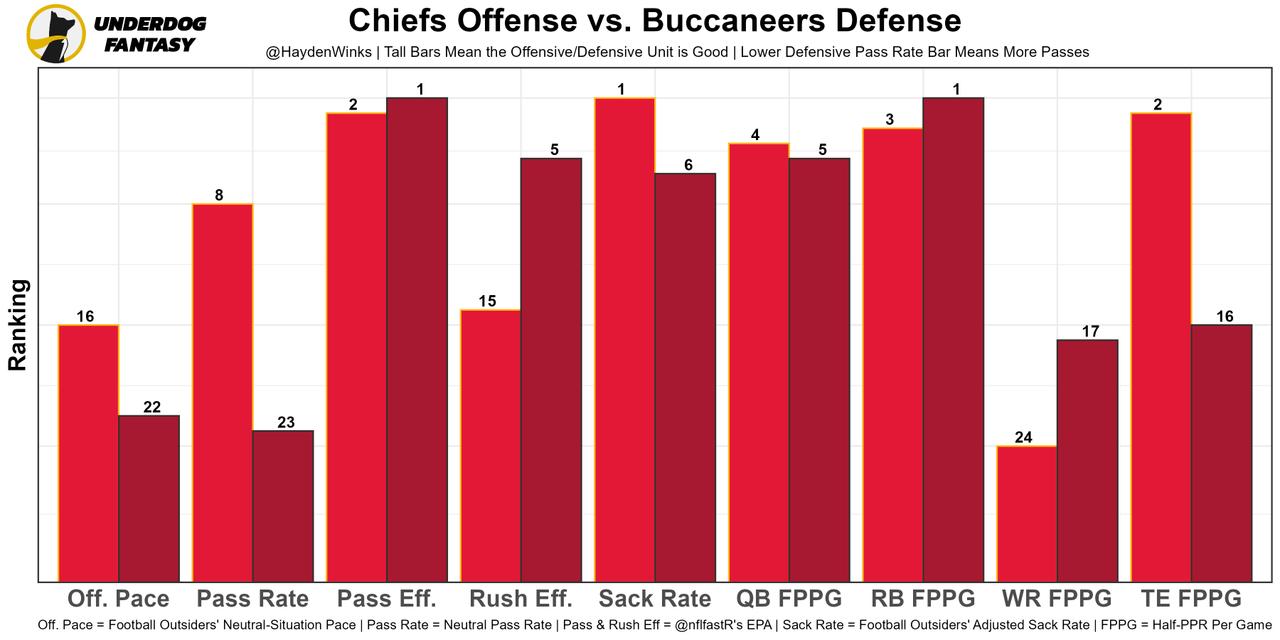 Famous last words, but I think Mahomes is not an elite fantasy QB this week. Kansas City has a lower-than-usual team total against a defense that's top-6 in passing EPA, adjusted sack rate, and QB fantasy points allowed. Mahomes has played well (1st in passing EPA per play), but it's obvious that the offense is working through their new personnel and formations. They should get better later in the season. Lastly, we could have weather issues if this game stays in Florida due to Hurricane Ian. It could move to the Minnesota dome.