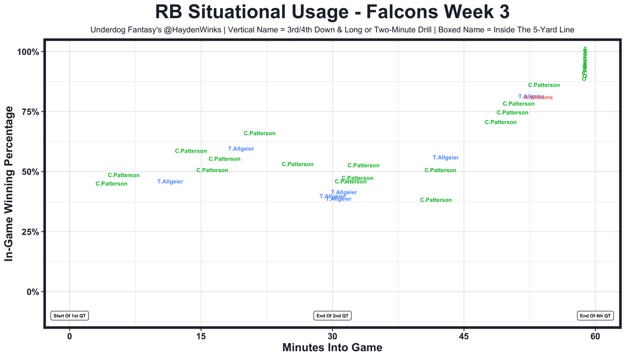Chased down outside of the pocket like a wounded zebra, Ryan's success will be entirely pocket focused and will be limited in general. The Titans defense is missing pieces everywhere, however. More on this later in the week.
