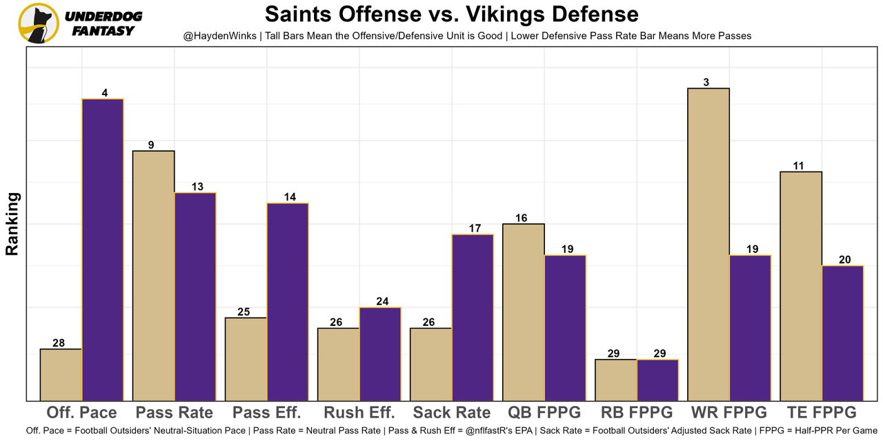 Chris Olave - No Alvin Kamara or Michael Thomas. Expect more underneath targets with Andy Dalton, too. He is one of "My Guys" this week (video).