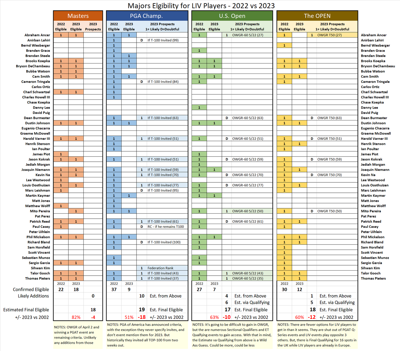 To that end, all four majors have announced their eligibility and exemption criteria for 2023 and all four tournaments have decided that *QUALIFIED* LIV Golf players will be allowed to compete.