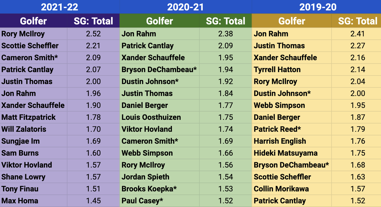 Coming into last year’s Fortinet Championship, Homa was the 44th ranked golfer in the world and has since risen to number 20. His stats, particularly in the strokes gained department, became more consistent during the 2021-22 season (reflected in Homa missing just 3 total cuts). Homa obviously reaped the rewards of his improved play, winning again later on in the season at the Wells Fargo Championship, finishing T5 at the Tour Championship, and being selected onto the U.S. Presidents Cup team.