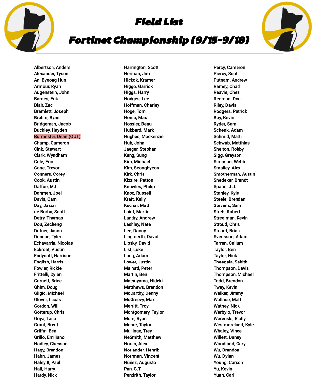 As highlighted above, Dean Burmester pulled out of the field over the weekend (no reason given); he's been replaced by Kevin Chappell.