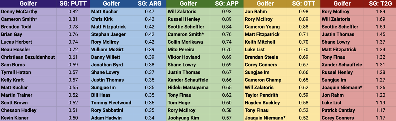 Homa played exceptional golf throughout the bag on route to winning last year’s Fortinet Championship. Strong tee-to-green is often an indicator of a golfer playing well, so it’s no surprise to see that Homa finished 6th off the tee, 12th on approach, and 15th around the green.