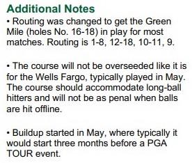 Keith Wood, who is the Director of Green and Grounds--and also the Superintendent--at Quail Hollow left these additional notes on the tournament fact sheet: