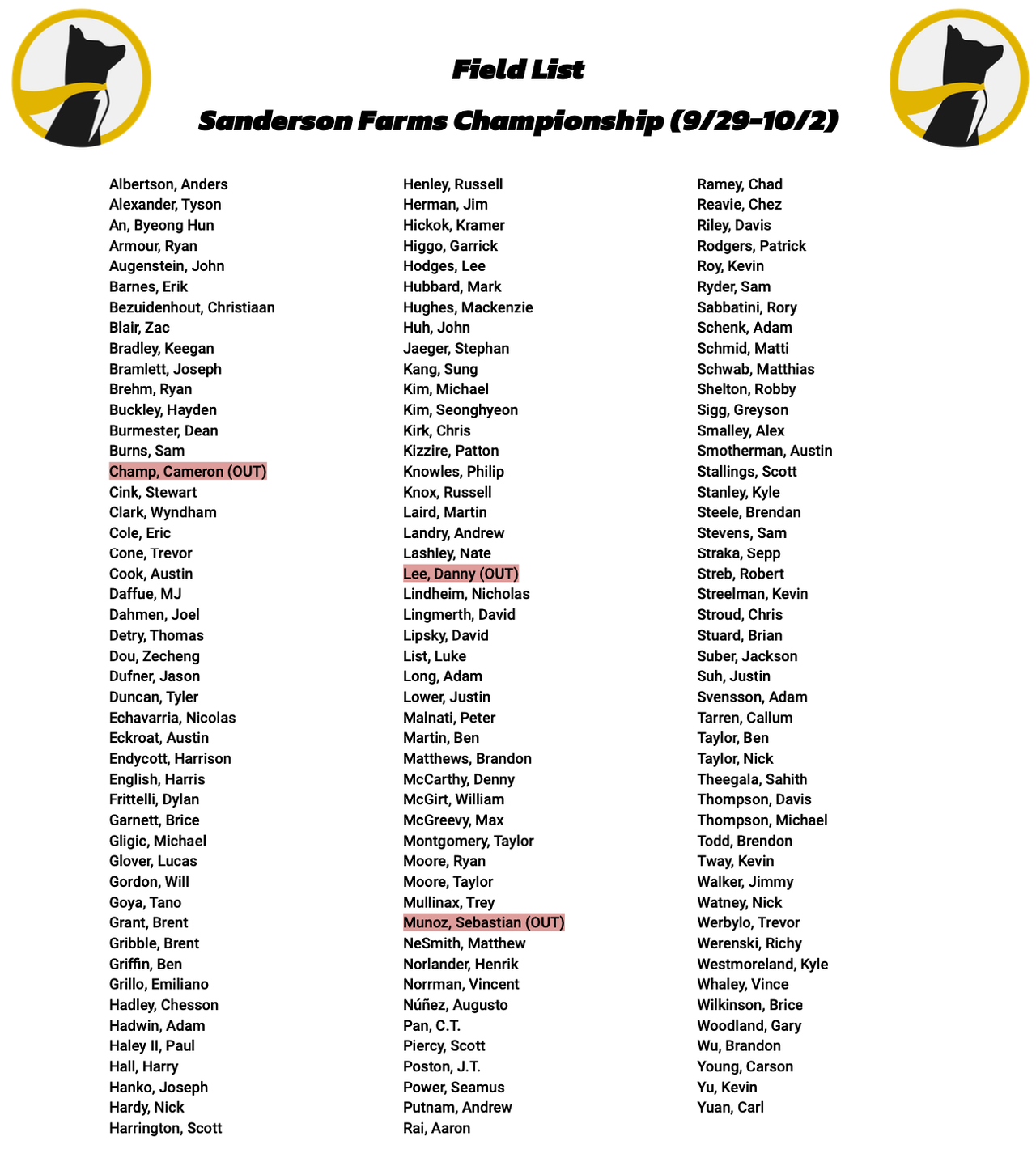 Cameron Champ and Danny Lee pulled out of the field shortly after it was announced. They were replaced by Harry Higgs, who was the first alternate, as well as William Furr, Vaughn Taylor, and Dylan Wu, who all got in under sponsors exemption.