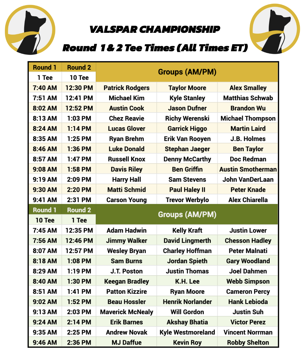 Updated throughout each tournament week, 'The Starter' will provide key news, notes, and other nuggets prior to the first tee time on Thursday morning. Think of it as an all-in-one resource to help guide you in the days leading up to the start of the tournament, as you prepare your fantasy golf lineups and entries. As soon as we receive valuable news updates on things such as tee times, featured groups, withdrawals and other course reports we’ll be sure to post them all here.