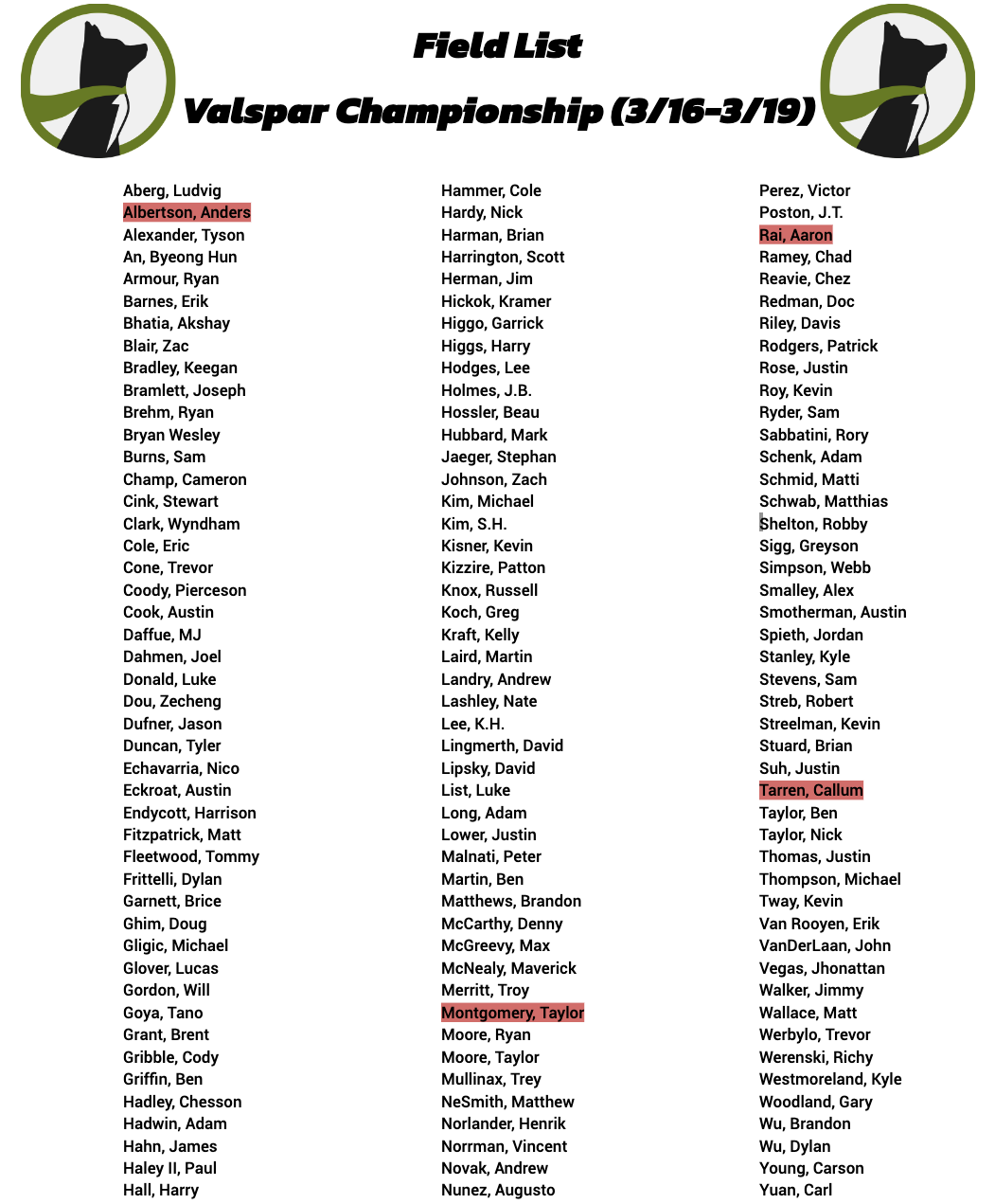 Sponsor Exemptions (+): Martin Trainer, Ryan Gerard, Nick Gabrelcik, Ludvig Aberg, Pierceson Coody, Cole Hammer, Victor Perez