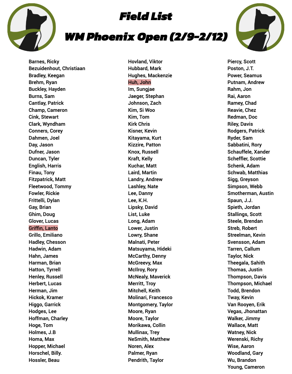 Field Changes (-): John Huh and Lanto Griffin both pulled out of the original field list.