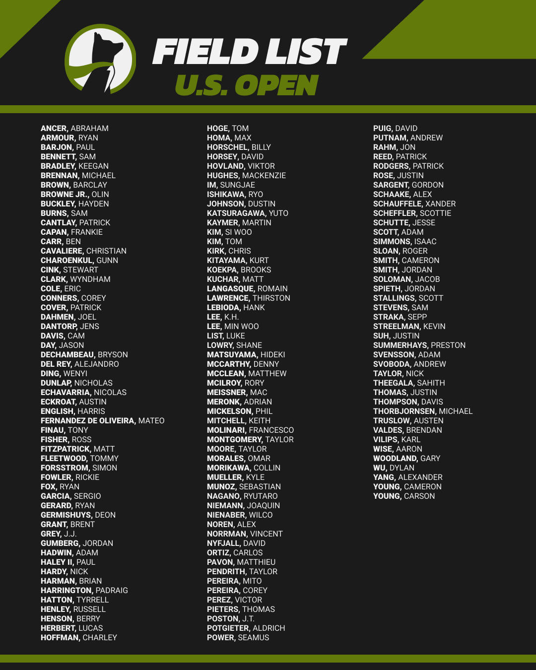 This column will provide any field updates, injury news, and other player notes in the days leading up to the U.S. Open.