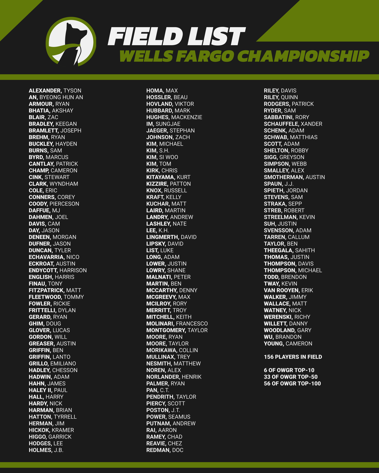 This column will provide any field updates, injury news, and other player notes in the days leading up to the Wells Fargo Championship.